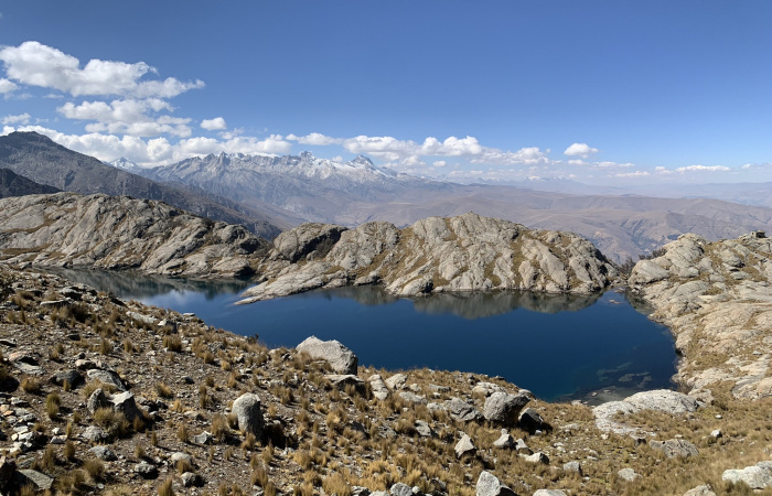 Está situada a 11.7 km. al Noreste de la urbe del distrito de Independencia, a una altura de 4550 m.s.n.m., en la región Puna o Jalca, su clima es frío, seco y templado, la temperatura con días soleados alcanza los 25° C y noches de intenso frío en las que son frecuentes las heladas y temperaturas inferiores a los 0° C. Es un depósito natural de agua dulce ubicado dentro del Parque Nacional Huascarán, presenta aguas limpias y cristalinas semejantes a un espejo de agua de reflejo azul. En los alrededores de la laguna se puede apreciar flora característica de la región Puna como el ichu, flores como la Bomarea dulcis (Alstroemeriaceae), la Loricaria ferruginea (Asteraceae), la denominada Pupusa o en quechua Allqo cebolla werneria nubigena (Asteraceae); en el recorrido también se puede apreciar especies como Alonsoa meridionalis (Scrophulariaceae) y quenuales (Polylepis) en la parte alta del sendero. En cuanto a la fauna resalta la presencia de la gaviota andina (Chroicocephalus serranus), que mide aproximadamente 41 cm, siendo la única especie de gaviota andina, en los Andes del Perú, viéndose generalmente grupos chicos cerca de la laguna o volando encima de ella, además los patos silvestres nadando en la laguna. La caminata dura aproximadamente 4 horas, iniciando desde el Monumento Arqueológico de Willkawain, por un sendero bien formado, se camina constantemente hacia arriba a través de tierras de cultivo con vistas a las montañas circundantes, este tramo de la caminata es sencillo y poco a poco se llega a la parte mas empinada que requiere mayor exigencia física, la última parte se realiza por un sendero rocoso que nos lleva a la laguna, desde aquí se puede apreciar la belleza de los Nevados Vallunaraju, Churup, Huamashraju, Cashan y una buena vista de la ciudad de Huaraz.